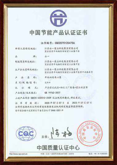 中国节能产品认证证书(单级双吸离心泵)1